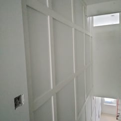 🎨 Painting: Cut in edges, apply multiple coats for even coverage, paint walls, ceilings, doors, and trim using high-quality materials.